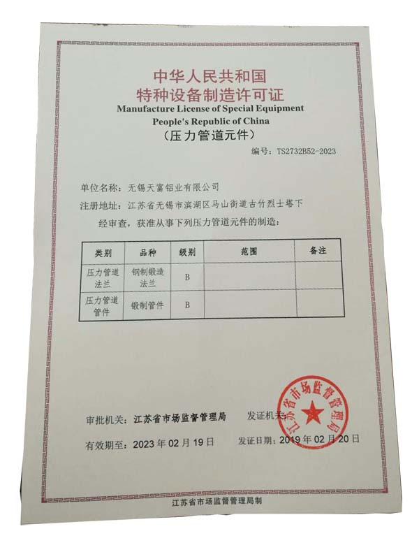 無錫天富鋁業(yè)專業(yè)生產(chǎn)各類焊接鋁管、無縫彎管、任意角度無縫鋁彎管、焊接鋁彎管、鋁三通(鍛件)、鋁肩圈、鋁縮接、鋁管帽、法蘭、焊接襯圈、“O”型圈、非標(biāo)無縫鋁彎管、接管。可根據(jù)用戶需求定制各類彎管、肩圈、縮接、管帽、襯圈、接管,可按照用戶圖紙定制。同時(shí)也承接不銹鋼、碳鋼及其他材料的彎管、肩圈、縮接、管帽、襯圈、接管等。我們擁有壓力管道設(shè)備生產(chǎn)許可證, 可從事特種設(shè)備的制造!