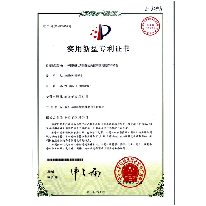 02一種圓編機(jī)調(diào)線變色頭控制機(jī)構(gòu)的作動(dòng)結(jié)構(gòu)