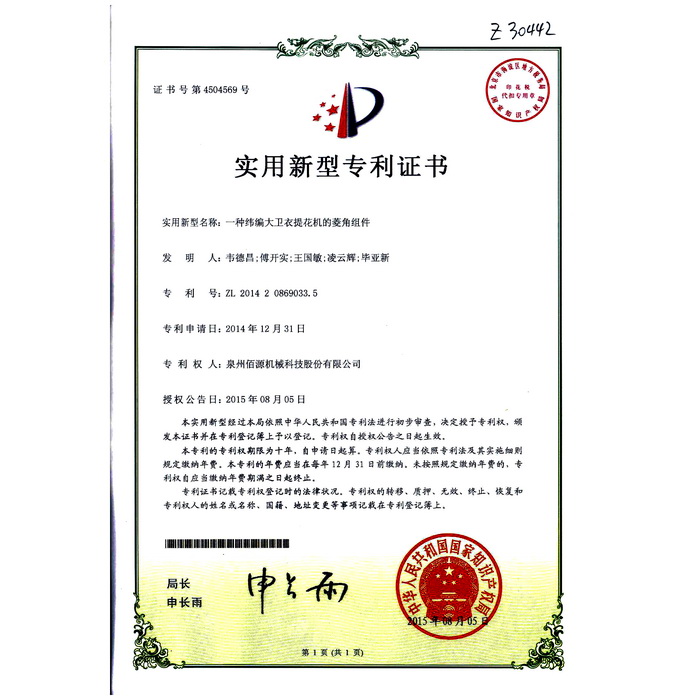 03一種緯編大衛(wèi)衣提花機(jī)的菱角組件