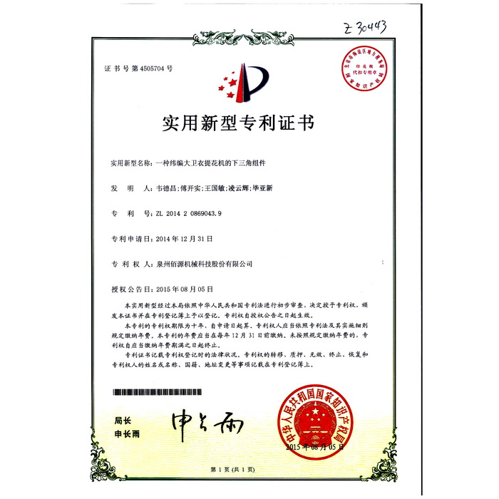 04一種緯編大衛(wèi)衣提花機(jī)的下三角組件